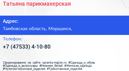 Татьяна, парикмахерская по адресу Тамбовская область, Моршанск, в дальнейшем Организация, размещена в следующих категориях: