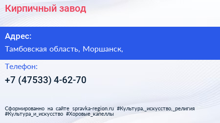 Кирпичный завод по адресу Тамбовская область, Моршанск, в дальнейшем Организация, размещена в следующих категориях: