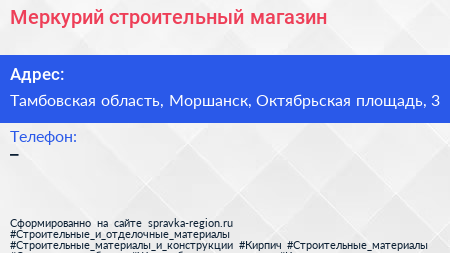 Меркурий, строительный магазин по адресу Тамбовская область, Моршанск, Октябрьская площадь, 3 в дальнейшем Организация, размещена в следующих категориях: