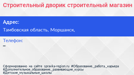 Строительный дворик, строительный магазин по адресу Тамбовская область, Моршанск, в дальнейшем Организация, размещена в следующих категориях: