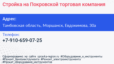 Стройка на Покровской, торговая компания по адресу Тамбовская область, Моршанск, Евдокимова, 30а в дальнейшем Организация, размещена в следующих категориях: