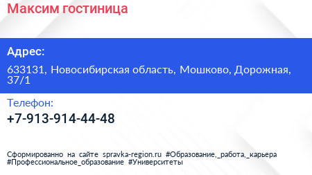 Максим, гостиница по адресу 633131, Новосибирская область, Мошково, Дорожная, 37/1 в дальнейшем Организация, размещена в следующих категориях: