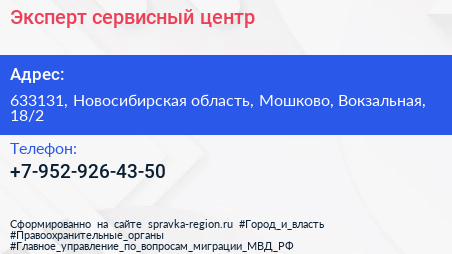 Эксперт, сервисный центр по адресу 633131, Новосибирская область, Мошково, Вокзальная, 18/2 в дальнейшем Организация, размещена в следующих категориях: