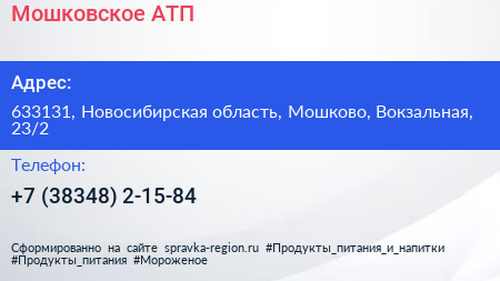Мошковское АТП по адресу 633131, Новосибирская область, Мошково, Вокзальная, 23/2 в дальнейшем Организация, размещена в следующих категориях: