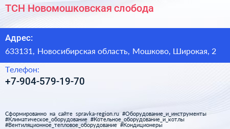 ТСН Новомошковская слобода по адресу 633131, Новосибирская область, Мошково, Широкая, 2 в дальнейшем Организация, размещена в следующих категориях:
