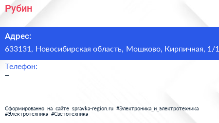 Рубин по адресу 633131, Новосибирская область, Мошково, Кирпичная, 1/1 в дальнейшем Организация, размещена в следующих категориях: