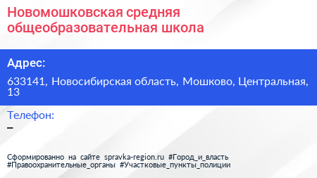 Новомошковская средняя общеобразовательная школа по адресу 633141, Новосибирская область, Мошково, Центральная, 13 в дальнейшем Организация, размещена в следующих категориях:
