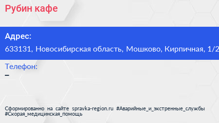 Рубин, кафе по адресу 633131, Новосибирская область, Мошково, Кирпичная, 1/2 в дальнейшем Организация, размещена в следующих категориях: