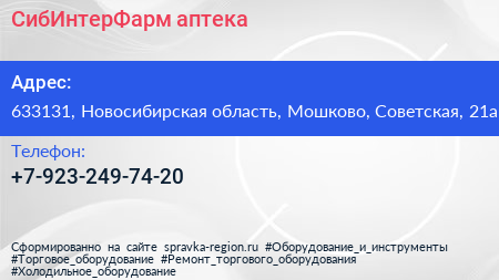 СибИнтерФарм, аптека по адресу 633131, Новосибирская область, Мошково, Советская, 21а в дальнейшем Организация, размещена в следующих категориях: