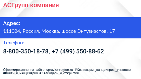 АСГрупп, компания по адресу 111024, Россия, Москва, шоссе Энтузиастов, 17 в дальнейшем Организация, размещена в следующих категориях: