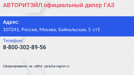 АВТОРИТЭЙЛ, официальный дилер ГАЗ по адресу 107241, Россия, Москва, Байкальская, 5 ст1 в дальнейшем Организация, размещена в следующих категориях: