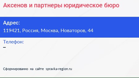 Аксенов и партнеры, юридическое бюро по адресу 119421, Россия, Москва, Новаторов, 44 в дальнейшем Организация, размещена в следующих категориях: