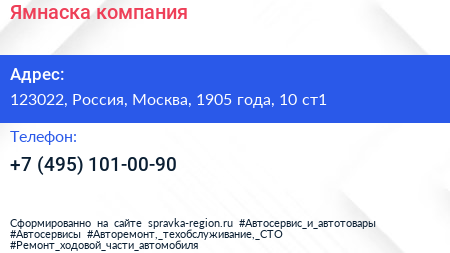 Ямнаска, компания по адресу 123022, Россия, Москва, 1905 года, 10 ст1 в дальнейшем Организация, размещена в следующих категориях: