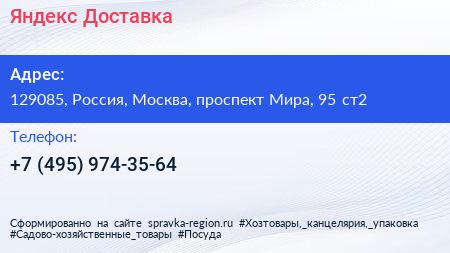 Яндекс.Доставка по адресу 129085, Россия, Москва, проспект Мира, 95 ст2 в дальнейшем Организация, размещена в следующих категориях: