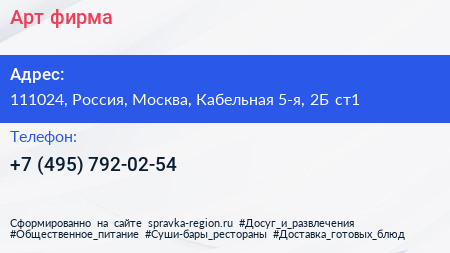 Арт, фирма по адресу 111024, Россия, Москва, Кабельная 5-я, 2Б ст1 в дальнейшем Организация, размещена в следующих категориях: