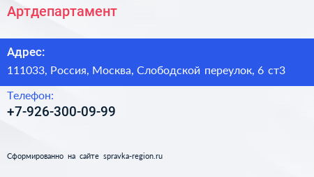 Артдепартамент по адресу 111033, Россия, Москва, Слободской переулок, 6 ст3 в дальнейшем Организация, размещена в следующих категориях: