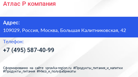 Атлас-Р, компания по адресу 109029, Россия, Москва, Большая Калитниковская, 42 в дальнейшем Организация, размещена в следующих категориях:
