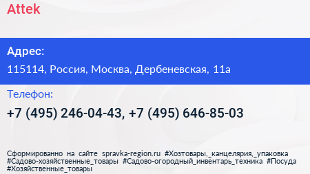 Attek по адресу 115114, Россия, Москва, Дербеневская, 11а в дальнейшем Организация, размещена в следующих категориях: