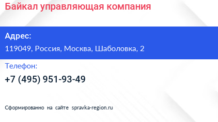 Байкал, управляющая компания по адресу 119049, Россия, Москва, Шаболовка, 2 в дальнейшем Организация, размещена в следующих категориях:
