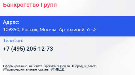 Банкротство-Групп по адресу 109390, Россия, Москва, Артюхиной, 6 к2 в дальнейшем Организация, размещена в следующих категориях: