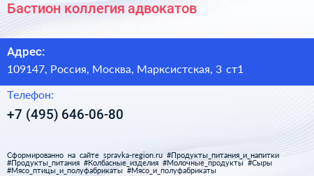 Бастион, коллегия адвокатов по адресу 109147, Россия, Москва, Марксистская, 3 ст1 в дальнейшем Организация, размещена в следующих категориях: