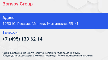 Borisov Group по адресу 125310, Россия, Москва, Митинская, 55 к1 в дальнейшем Организация, размещена в следующих категориях: