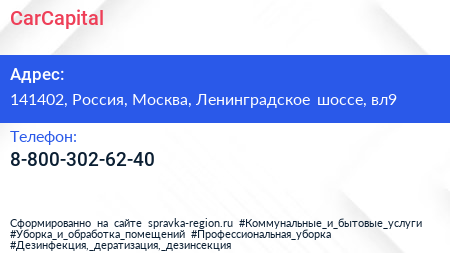 CarCapital по адресу 141402, Россия, Москва, Ленинградское шоссе, вл9 в дальнейшем Организация, размещена в следующих категориях: