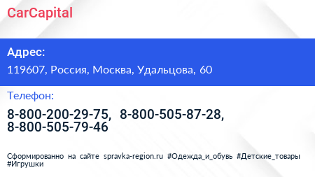 CarCapital по адресу 119607, Россия, Москва, Удальцова, 60 в дальнейшем Организация, размещена в следующих категориях: