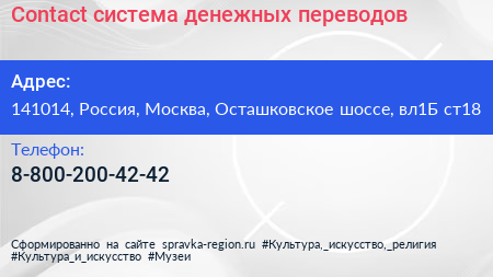 Contact, система денежных переводов по адресу 141014, Россия, Москва, Осташковское шоссе, вл1Б ст18 в дальнейшем Организация, размещена в следующих категориях: