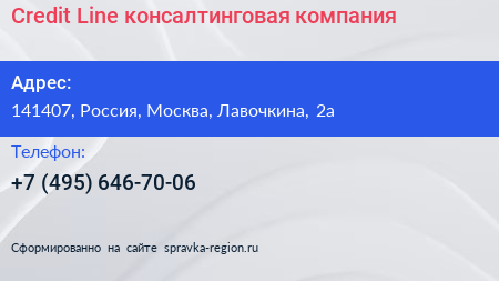 Credit Line, консалтинговая компания по адресу 141407, Россия, Москва, Лавочкина, 2а в дальнейшем Организация, размещена в следующих категориях: