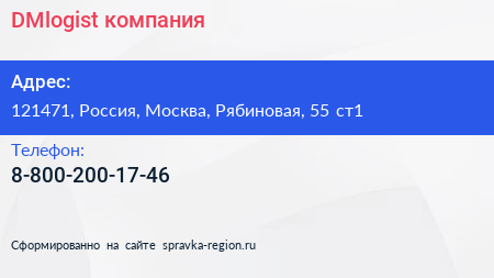 DMlogist, компания по адресу 121471, Россия, Москва, Рябиновая, 55 ст1 в дальнейшем Организация, размещена в следующих категориях: