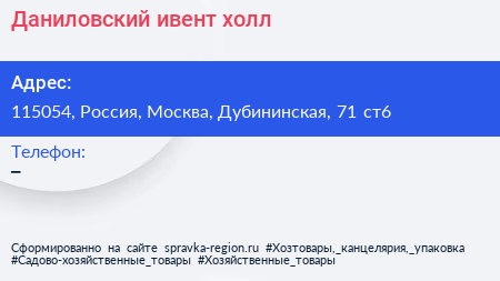 Даниловский, ивент-холл по адресу 115054, Россия, Москва, Дубининская, 71 ст6 в дальнейшем Организация, размещена в следующих категориях: