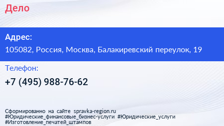 Дело по адресу 105082, Россия, Москва, Балакиревский переулок, 19 в дальнейшем Организация, размещена в следующих категориях:
