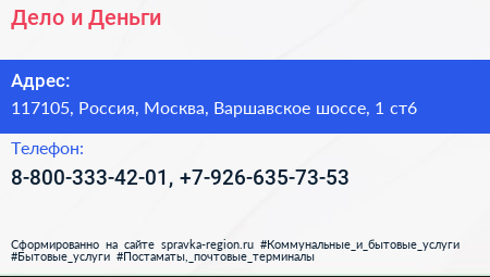 Дело и Деньги по адресу 117105, Россия, Москва, Варшавское шоссе, 1 ст6 в дальнейшем Организация, размещена в следующих категориях: