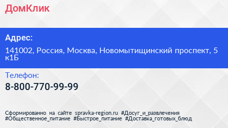 ДомКлик по адресу 141002, Россия, Москва, Новомытищинский проспект, 5 к1Б в дальнейшем Организация, размещена в следующих категориях: