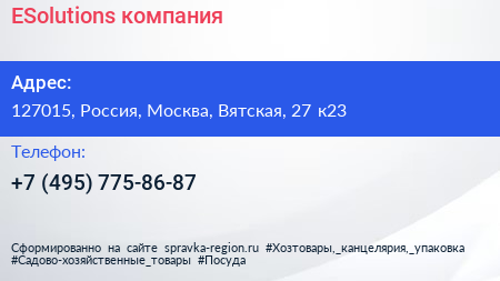 ESolutions, компания по адресу 127015, Россия, Москва, Вятская, 27 к23 в дальнейшем Организация, размещена в следующих категориях:
