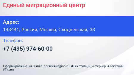 Единый миграционный центр по адресу 143441, Россия, Москва, Сходненская, 33 в дальнейшем Организация, размещена в следующих категориях: