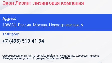 Экон-Лизинг, лизинговая компания по адресу 108831, Россия, Москва, Новостроевская, 6 в дальнейшем Организация, размещена в следующих категориях: