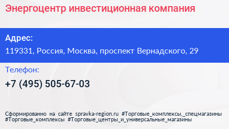 Энергоцентр, инвестиционная компания по адресу 119331, Россия, Москва, проспект Вернадского, 29 в дальнейшем Организация, размещена в следующих категориях: