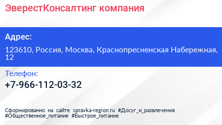 ЭверестКонсалтинг, компания по адресу 123610, Россия, Москва, Краснопресненская Набережная, 12 в дальнейшем Организация, размещена в следующих категориях: