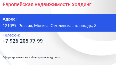 Европейская недвижимость, холдинг по адресу 121099, Россия, Москва, Смоленская площадь, 3 в дальнейшем Организация, размещена в следующих категориях: