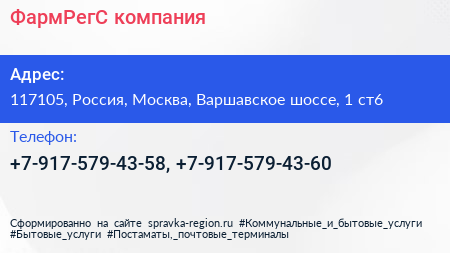 ФармРегС, компания по адресу 117105, Россия, Москва, Варшавское шоссе, 1 ст6 в дальнейшем Организация, размещена в следующих категориях: