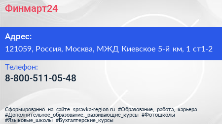 Финмарт24 по адресу 121059, Россия, Москва, МЖД Киевское 5-й км, 1 ст1-2 в дальнейшем Организация, размещена в следующих категориях: