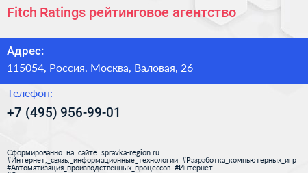 Fitch Ratings, рейтинговое агентство по адресу 115054, Россия, Москва, Валовая, 26 в дальнейшем Организация, размещена в следующих категориях: