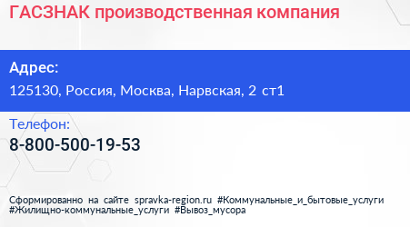 ГАСЗНАК, производственная компания по адресу 125130, Россия, Москва, Нарвская, 2 ст1 в дальнейшем Организация, размещена в следующих категориях:
