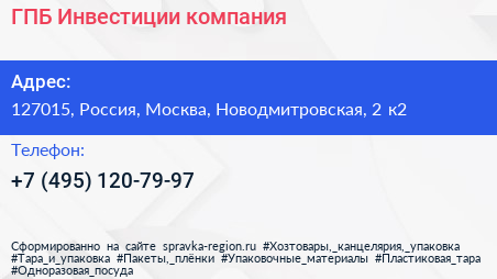 ГПБ Инвестиции, компания по адресу 127015, Россия, Москва, Новодмитровская, 2 к2 в дальнейшем Организация, размещена в следующих категориях: