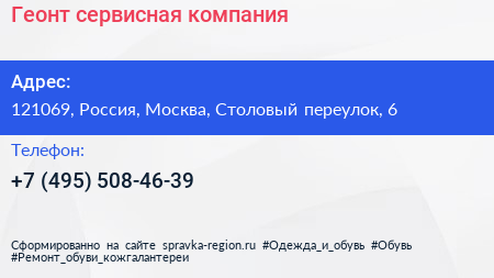 Геонт, сервисная компания по адресу 121069, Россия, Москва, Столовый переулок, 6 в дальнейшем Организация, размещена в следующих категориях: