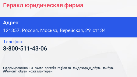 Геракл, юридическая фирма по адресу 121357, Россия, Москва, Верейская, 29 ст134 в дальнейшем Организация, размещена в следующих категориях: