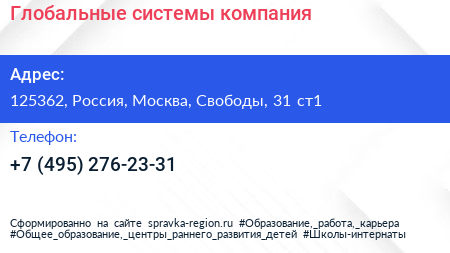Глобальные системы, компания по адресу 125362, Россия, Москва, Свободы, 31 ст1 в дальнейшем Организация, размещена в следующих категориях: