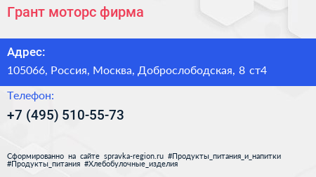 Грант-моторс, фирма по адресу 105066, Россия, Москва, Доброслободская, 8 ст4 в дальнейшем Организация, размещена в следующих категориях: